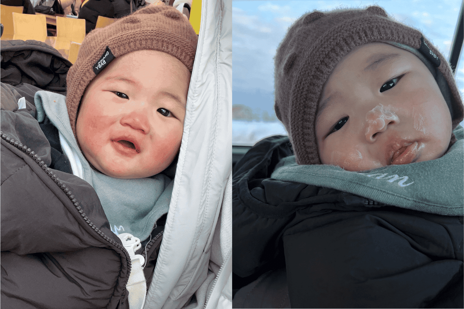 乳液的質地、擦的頻率,真的要看氣候、環境、膚況去調整。像出國去歐洲我會一天擦好幾次、乾到不行就搭配潤膚油;台灣濕熱時就換質地輕盈的乳液或只針對局部乾燥加強。寶寶皮膚變化很快,不是選一瓶厲害乳液就解決,要隨時調整使用習慣才有感。